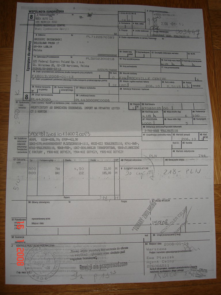 No na tym zdjęciu masz kwit celny: